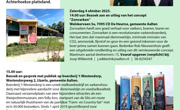 15.00 uur: Bezoek en gesprek met publiek op boerderij ’t Westendorp, Westendorpweg 2, IJzerlo, gemeente Aalten.