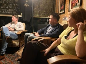 De reacties op socials en in de zaal waren bijzonder positief over de sfeer, de inhoud en de organisatie van deze avond. Een beetje chagrijn was wel te voelen vanwege een nogal luidruchtig groep rode petjes in het café, maar dat is het risico als je in een huiskamer bij elkaar komt: daar zitten ook wel andere mensen.