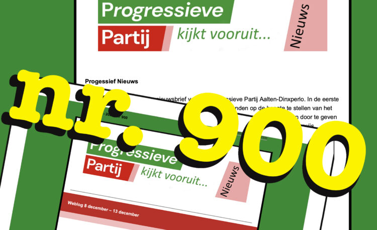 Een mijlpaal. Vandaag verschijnt de 900ste uitgaven van Progressief Nieuws. Al jaren lang geeft de Progressieve Partij u wekelijks een inkijkje in het politiek-bestuurlijk reilen en zeilen van de gemeente Aalten. Afwisselend gevuld door fractie en wethouder. We hopen zo met argumenten, informatie en feiten het begrip van onze inwoners voor achtergronden en besluiten te vergroten.