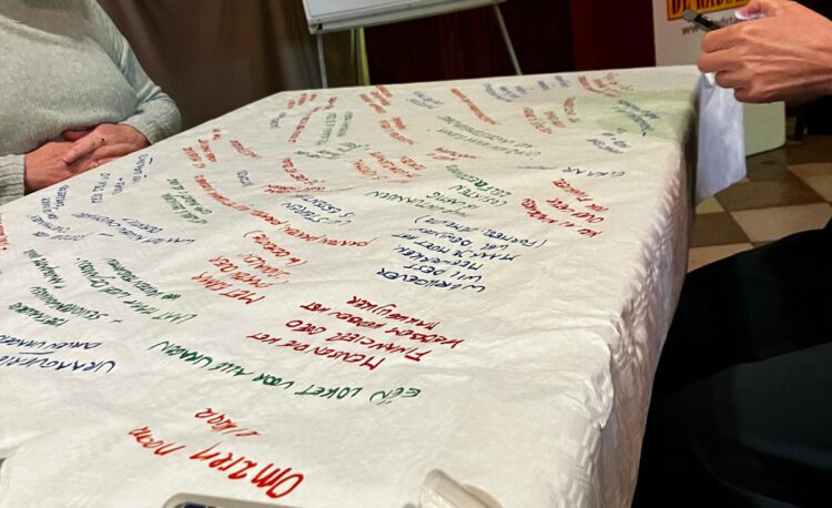 Ik was er om te luisteren en (beperkte) ervaringen te delen. Alle opmerkingen werden zoveel mogelijk op tafelkleden geschreven. De input wordt gebruikt bij een tweede bijeenkomst waar meer naar oplossingen gezocht wordt. Informatie op een vroegtijdige manier is hierbij van belang. Praat vandaag over morgen, is ook hier op z’n plaats.