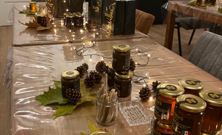 Na de pauze vertelde Zack over zijn reis vanuit Syrië naar Nederland. Een barre tocht via Griekenland midden in de coronatijd. Vanwege die corona werd hij geweigerd in Ter Apel, liep midden in de nacht naar Emmen en kon pas na twee maanden zich registreren. Zijn lerares Nederlands zat ook in de zaal en zij kon af en toe bijspringen wanneer niet helemaal duidelijk was wat Zack bedoelde te zeggen. Hij wilde graag een eigen bedrijf beginnen in olijfolie en honing, maar vertelde hoe lastig dat is in Nederland. Zack werkt drie dagen bij een bedrijf en besteedt twee dagen (en meer) aan zijn bedrijf. Shirley en hij hebben besloten om te beginnen met een webwinkel en maken dankbaar gebruik van deze avond om een proeverij te houden. Daarom wordt de hele zaal uitgenodigd om naar de keuken te komen, waar Zack uitlegt welke olijfolie hij verkoopt en welke honing. Hij heeft heel wat potjes bijzondere honing, bv Spaanse lavendelhoning of kastanjehoning, een herfstmix van honing met gember en propolis en hij verkoopt ook stuifmeelkorrels uit Oekraïne. De mensen konden met houten lepeltjes van elk potje honing proeven en er was ook gelegenheid om producten met Zack’s eigen merk te kopen. Daar werd gretig gebruik van gemaakt. De flessen olijfolie konden ook gekocht worden.
