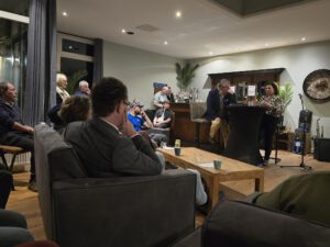 Joop zorgde voor interactie met de betrokken zaal en er volgden goede gesprekken die in de pauze werden voortgezet, terwijl bij de bar een drankje kon worden gekocht en de muziek voor een relaxte sfeer zorgde. Intussen hadden Zack en zijn vrouw Shirley in de ruime keuken twee lange tafels smaakvol ingericht voor een honingproeverij.