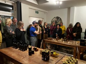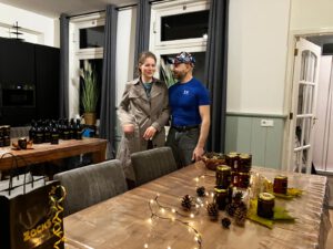 Na de pauze vertelde Zack over zijn reis vanuit Syrië naar Nederland. Een barre tocht via Griekenland midden in de coronatijd. Vanwege die corona werd hij geweigerd in Ter Apel, liep midden in de nacht naar Emmen en kon pas na twee maanden zich registreren. Zijn lerares Nederlands zat ook in de zaal en zij kon af en toe bijspringen wanneer niet helemaal duidelijk was wat Zack bedoelde te zeggen. Hij wilde graag een eigen bedrijf beginnen in olijfolie en honing, maar vertelde hoe lastig dat is in Nederland. Zack werkt drie dagen bij een bedrijf en besteedt twee dagen (en meer) aan zijn bedrijf. Shirley en hij hebben besloten om te beginnen met een webwinkel en maken dankbaar gebruik van deze avond om een proeverij te houden. Daarom wordt de hele zaal uitgenodigd om naar de keuken te komen, waar Zack uitlegt welke olijfolie hij verkoopt en welke honing. Hij heeft heel wat potjes bijzondere honing, bv Spaanse lavendelhoning of kastanjehoning, een herfstmix van honing met gember en propolis en hij verkoopt ook stuifmeelkorrels uit Oekraïne. De mensen konden met houten lepeltjes van elk potje honing proeven en er was ook gelegenheid om producten met Zack’s eigen merk te kopen. Daar werd gretig gebruik van gemaakt. De flessen olijfolie konden ook gekocht worden.