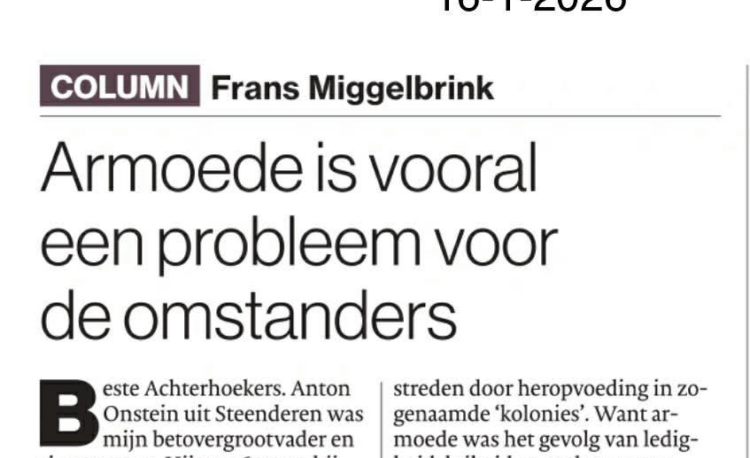 Nog een paar weken en dan zijn er verkiezingen. De meeste partijen hebben hun programma nog niet gepresenteerd. Daarom heb ik de vorige programma’s erbij gepakt. Ik las mooie woorden over zorgen voor elkaar. Echter, niets over maatschappelijke opvang en zorgen voor mensen die dakloos zijn of dreigen te worden. Alleen in het programma van de CU is te lezen dat gemeente Aalten moet zorgen voor een veilige opvang voor slachtoffers van loverboys, pooiers en mensenhandelaren. Het is alsof acute dakloosheid en onveilige thuissituaties in onze gemeente niet voorkomt. Helaas is de werkelijkheid minder mooi; ook in onze gemeente is behoefte aan crisisopvang. Dat is momenteel regionaal geregeld. Dat is eigenlijk best een beetje vreemd; we willen ‘omzien naar elkaar’, maar zodra een inwoner geen veilig thuis meer heeft, dan moet hij of zij naar Doetinchem vertrekken. Door veranderende regelgeving kunnen we als gemeente niet blijven leunen op andere gemeenten. Ook daarom moeten we een paar crisiswoningen realiseren.